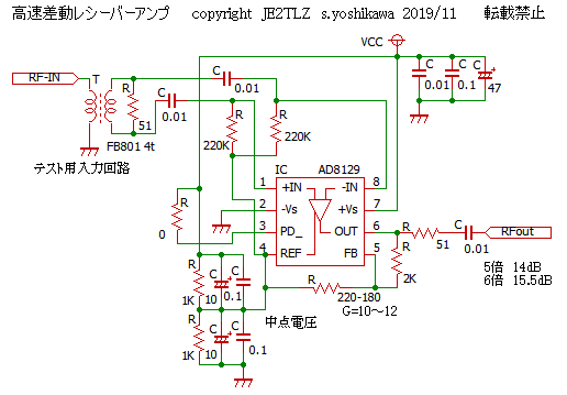 Spec IP3 +24dBm,1dB comp +10dBm,電源9〜11V,消費電流100mA
