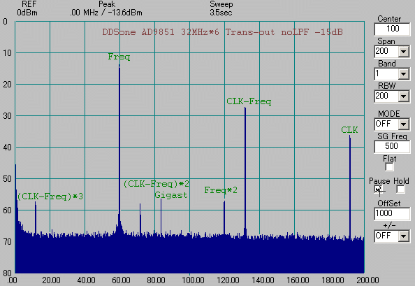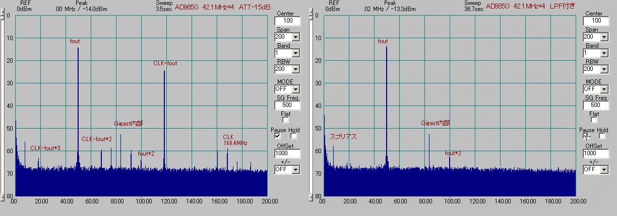 AD9851は中華基板ユニットに比べれば良いが、周波数上がると悪化。
