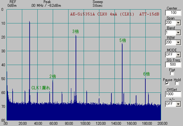 CLK=180MHz,出力が大きいのでATT-15dBを入れて測定している。