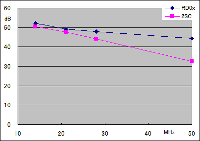 昔、2sc1969*1の50MHzAMPを作ったときは、Gain6倍で15Wでていたのに。広帯域で悪くなるようだ。