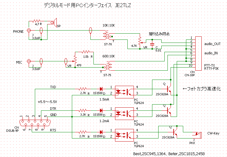 TLP624¤ÏÄã¶îưÍѤÀ¤¬¡¢PTT¤äCW¤ËÈæ¤ÙRTTY¤Ï®¤¤¤Î¤Ç1mA̤Ëþ¤Ç¤ÏÉÔ¤À¤Ã¤¿¤è¤¦¤À¡£