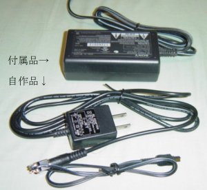 本体は秋月電子のスイッチングACアダプタで、入力はAC100-240V,出力5V‐1Aをそのまま使って、2.1Φジャックに付属ACアダプターのコードを切った物を繋いでいます。