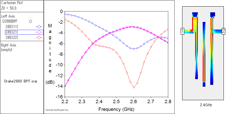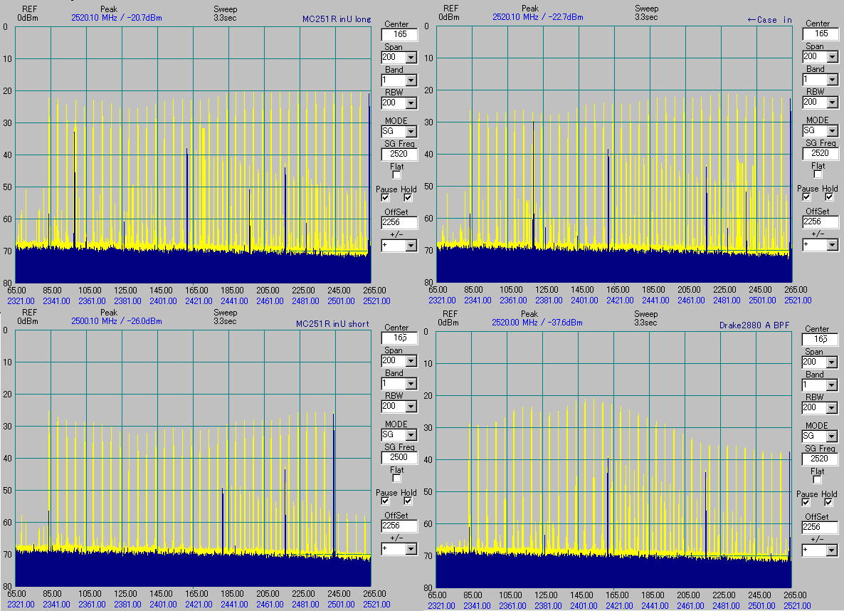 特性はあまり変わらないと思う予想に反し、2500MHz付近が落ちるし発振のようなピークが出てきてビックリ!。