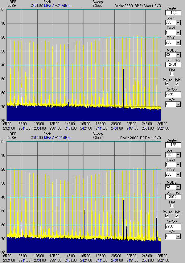 - さすが。2880もともと広帯域なので、Top/BPFをいじって狭帯域にすれば、GDになりますね。私は、BPFしかいじってないのでだめですね・・・。めんどくさがり屋より。 - ja0caw (2006/09/24 21:25)