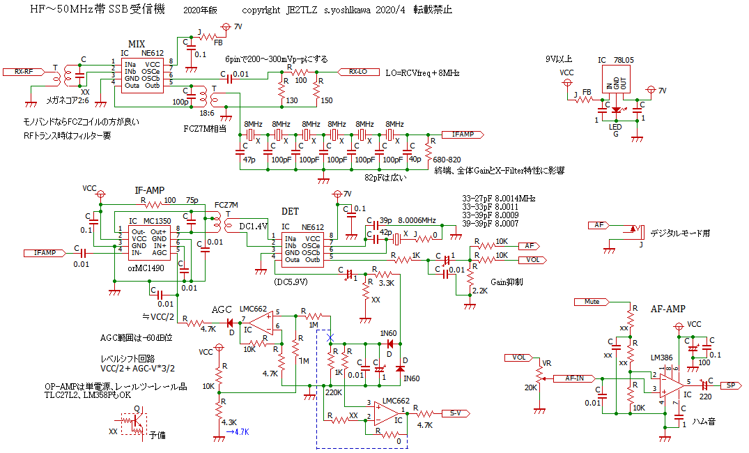 - 14〜50MHz SSB受信機のAGC変更 2020/2/20-4/20