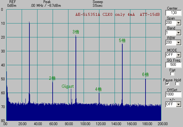 Gainありすぎなので入力ATTを3dB→6dBに変更、これはあまり影響無かった。