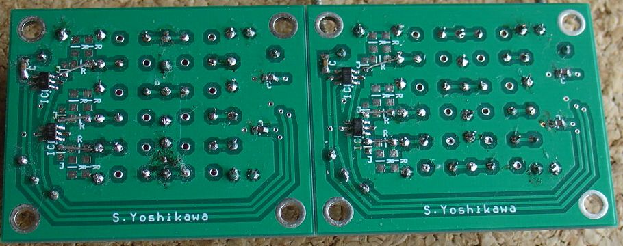 パーツを調べるとリレーやジャックは寸法が異なるしIC,FETにも入手難が多い。