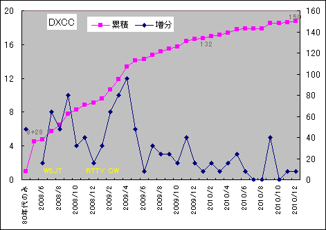 今月もコンテストで稼いだので局数は昨年より多くなったが、DXCCは1upのみの微増。