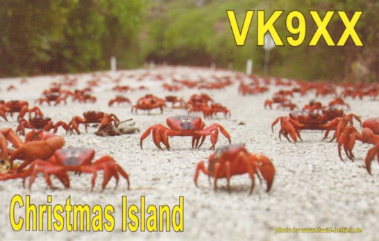 SASE着 VK9XX (クリスマス島名物の赤カニの大行進だ)