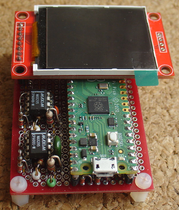 Raspberry pi pico¤ÏºÙ¥Ô¥ó¤ÈIC¥½¥±¥Ã¥È¤ÇÄ㤯¤·¤Æ¡¢TFT-LCD¤È½Å¤Í¤Æ¾®·¿²½¤·¤¿¡£