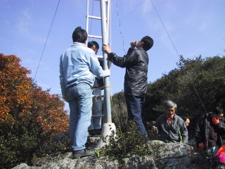 | 設置場所も近くの山を含め検討しましたが、許可の事などからテイクオフ裏の山頂にしました。 |
