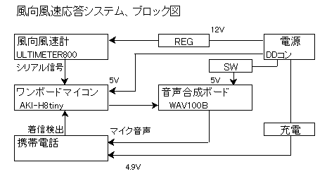| 携帯電話の電源を最初は外部から供給しようとしたんですが、通話時は消費電力の変動が激しいようでそれがアナウンス音の背後にバズ音として入ってしまい聞き取りにくくなっていました。